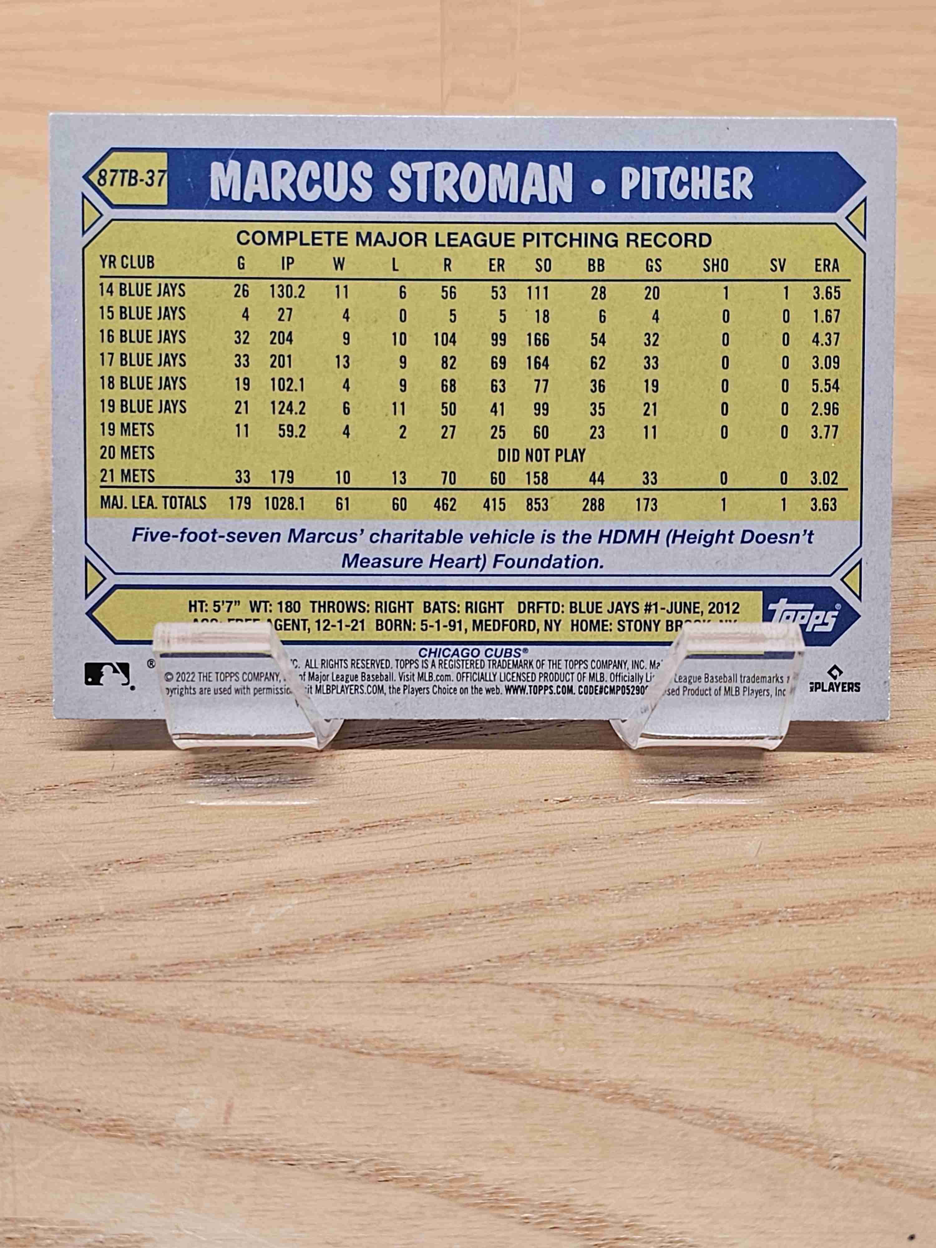 2022 Topps Baseball 1987 Topps 35th Anniversary Marcus Stroman Chicago Cubs Card #87TB-37