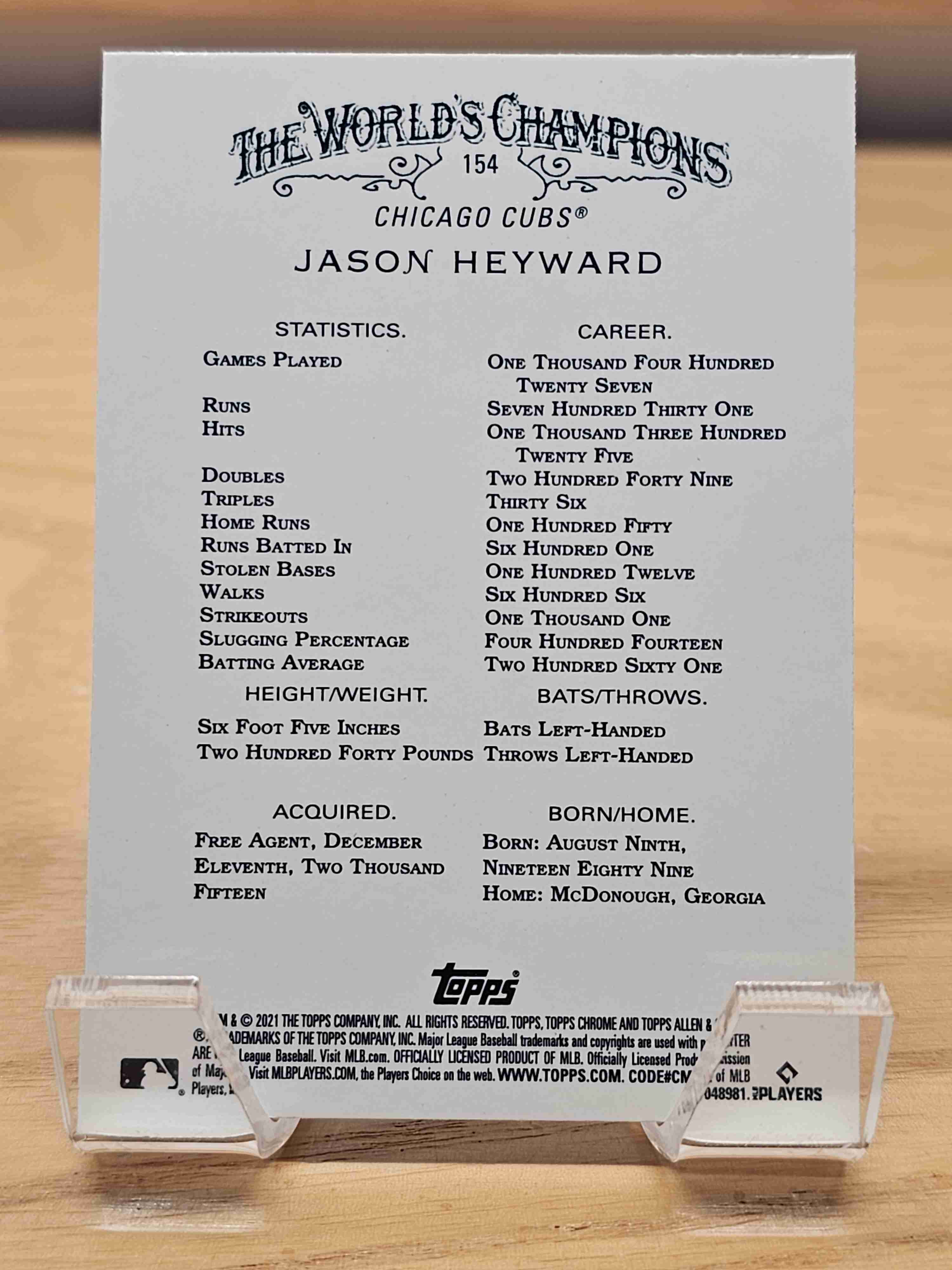 2021 Topps Chrome Allen & Ginter Baseball Jason Heyward Chicago Cubs Card #154