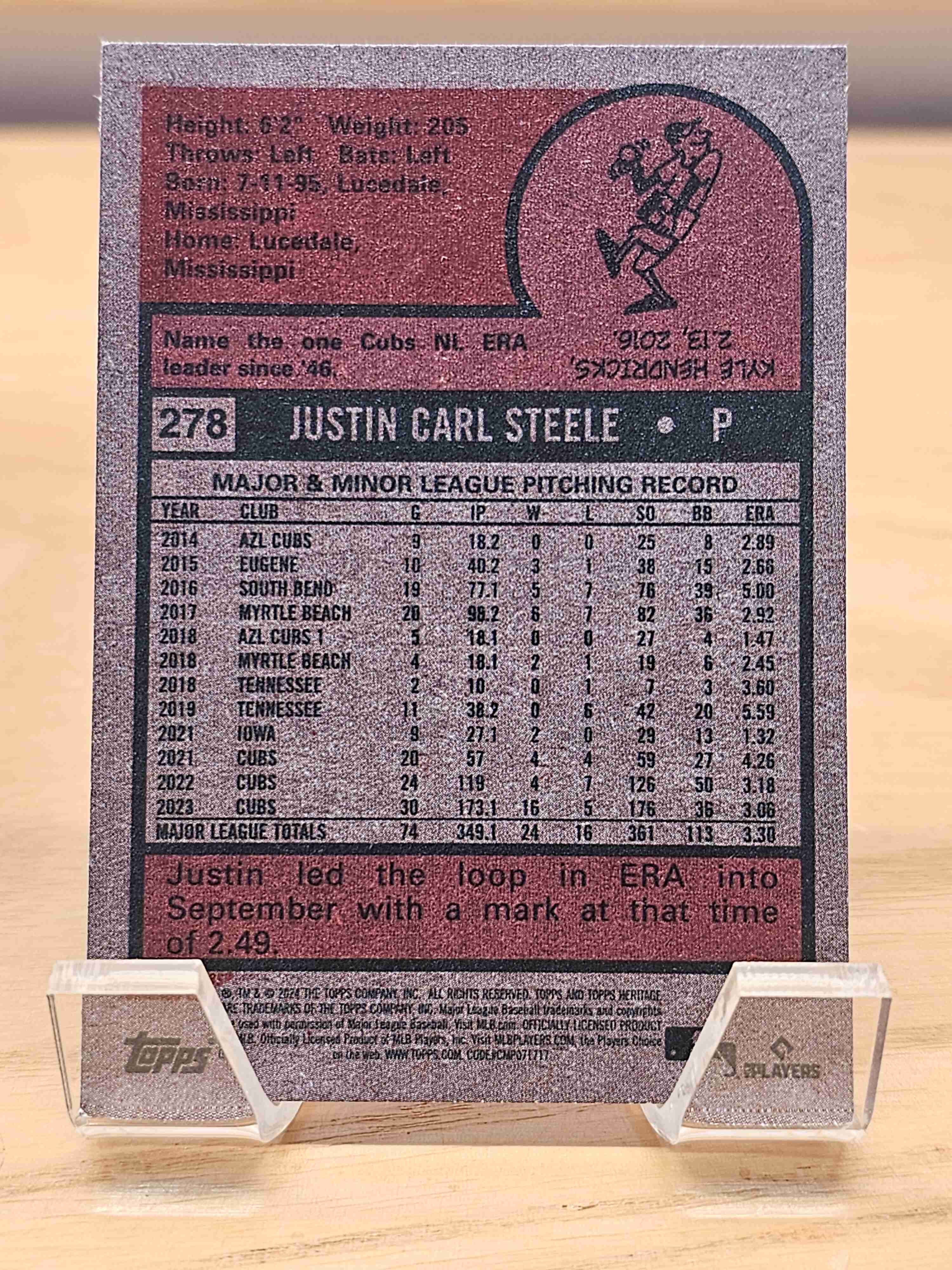 2024 Topps Heritage Baseball Justin Steele Chicago Cubs Card #278