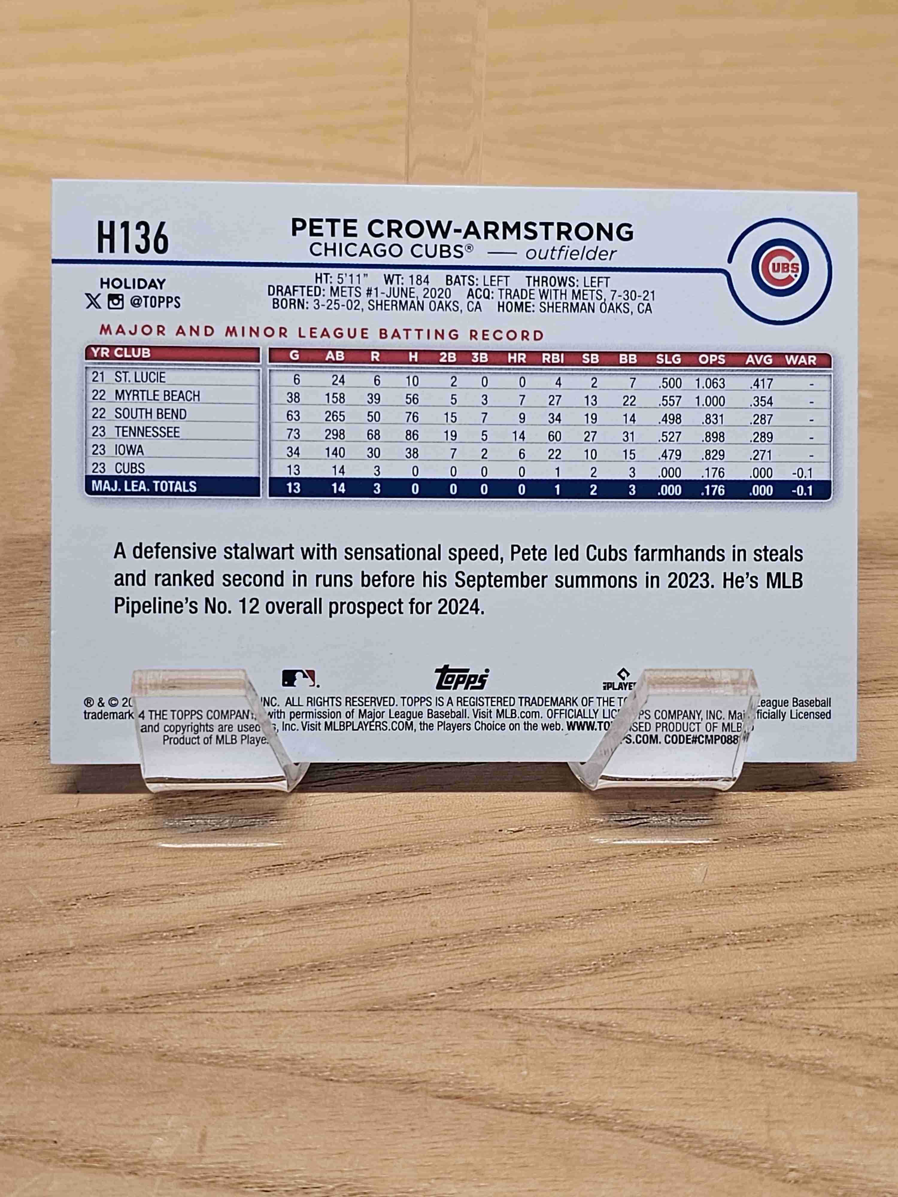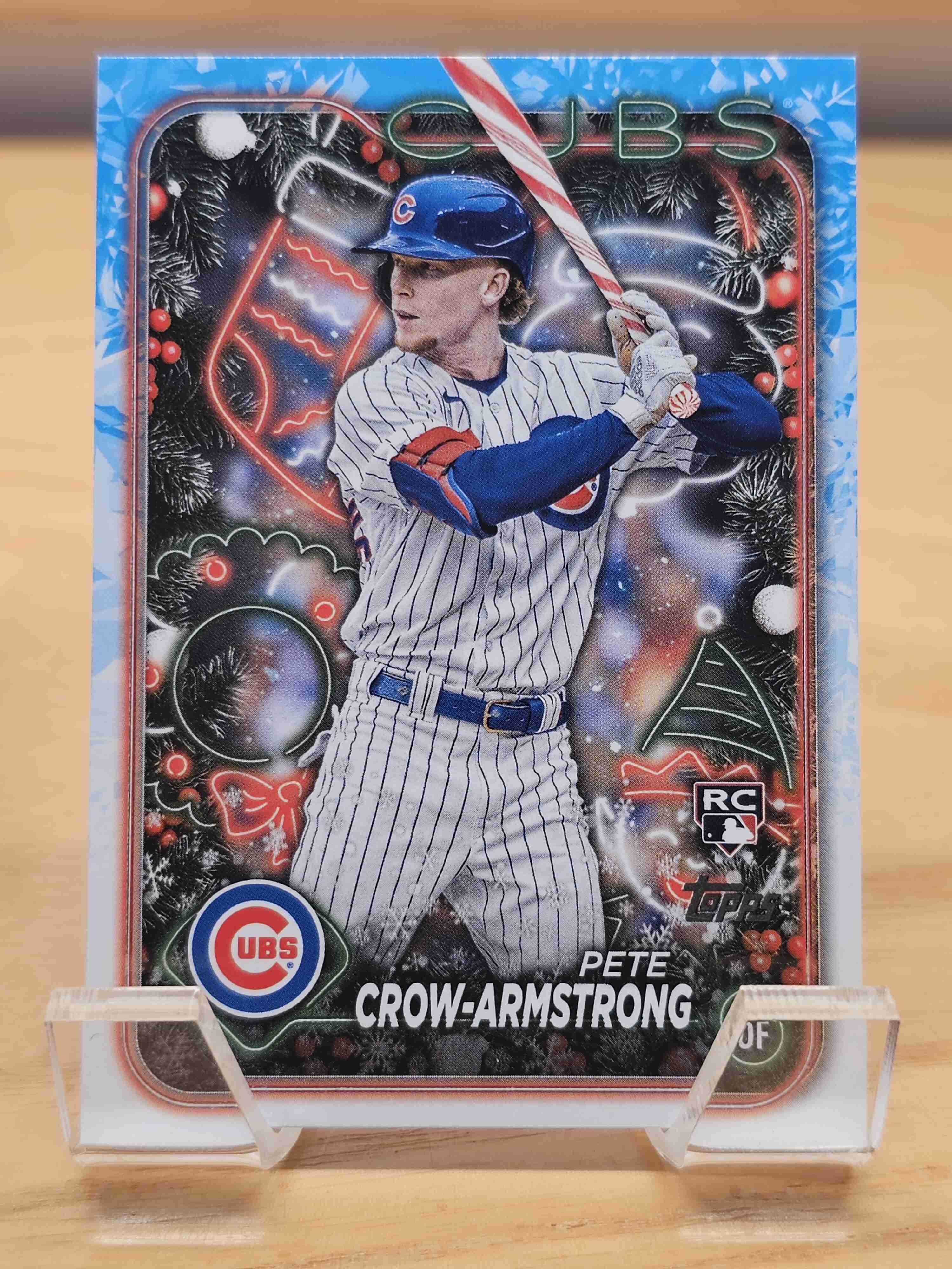 2024 Topps Holiday Rookie RC Pete Crow-Armstrong Holding Candy Cane Bat Chicago Cubs Card #H136