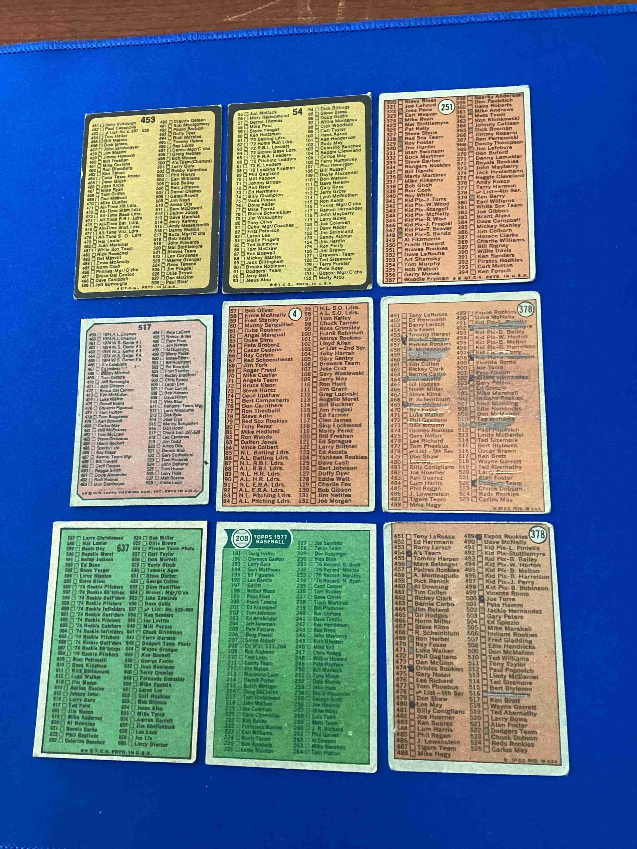 Lot of 9 Vintage Baseball Checklists