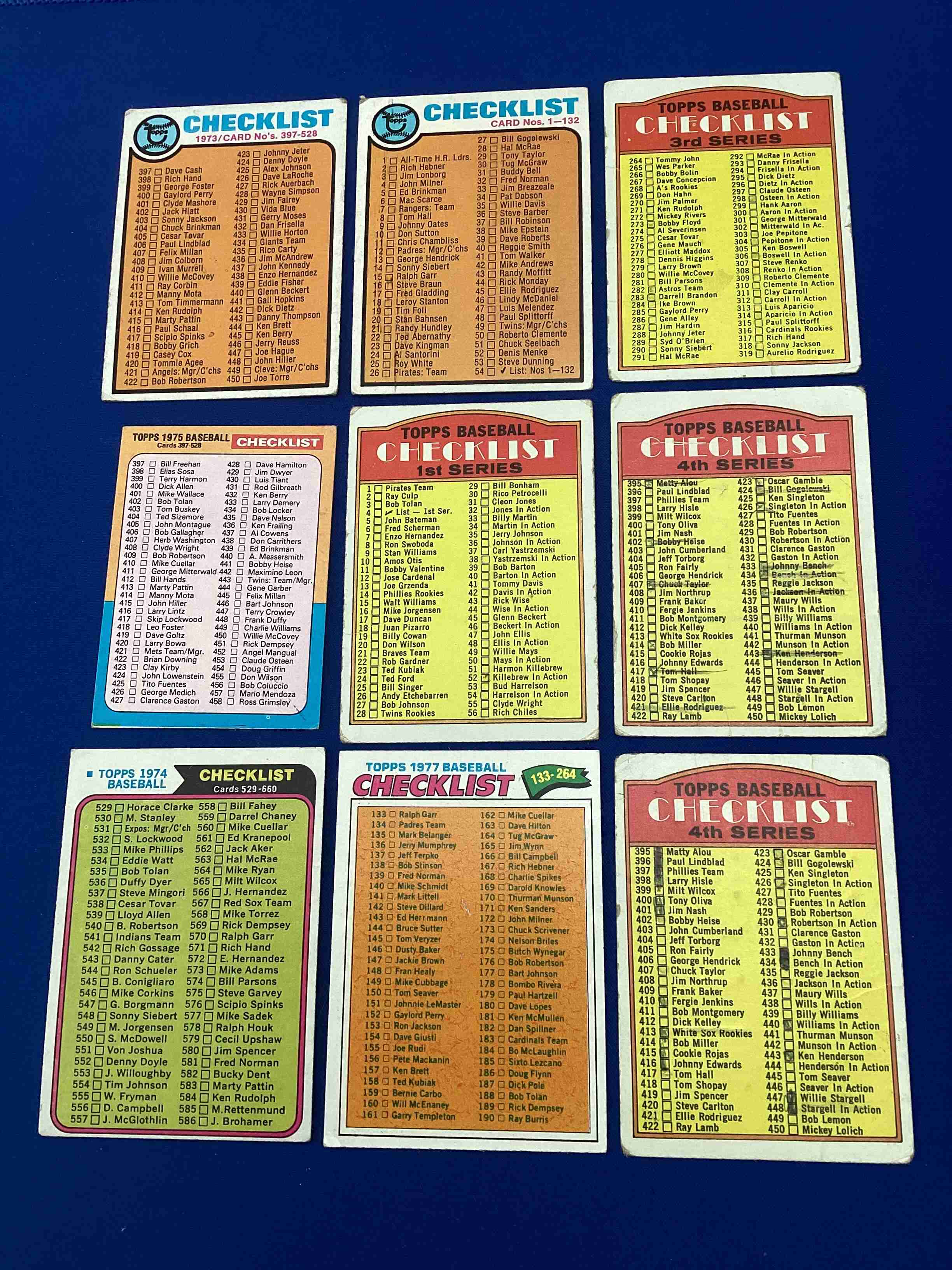 Lot of 9 vintage baseball checklists. 6 of 9 are unmarked. Please see my other auctions for more great deals.
