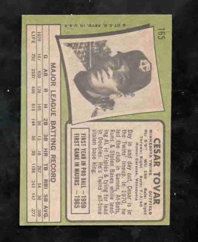 1971 Topps # 165 CESAR TOVAR Minn. Twins EX