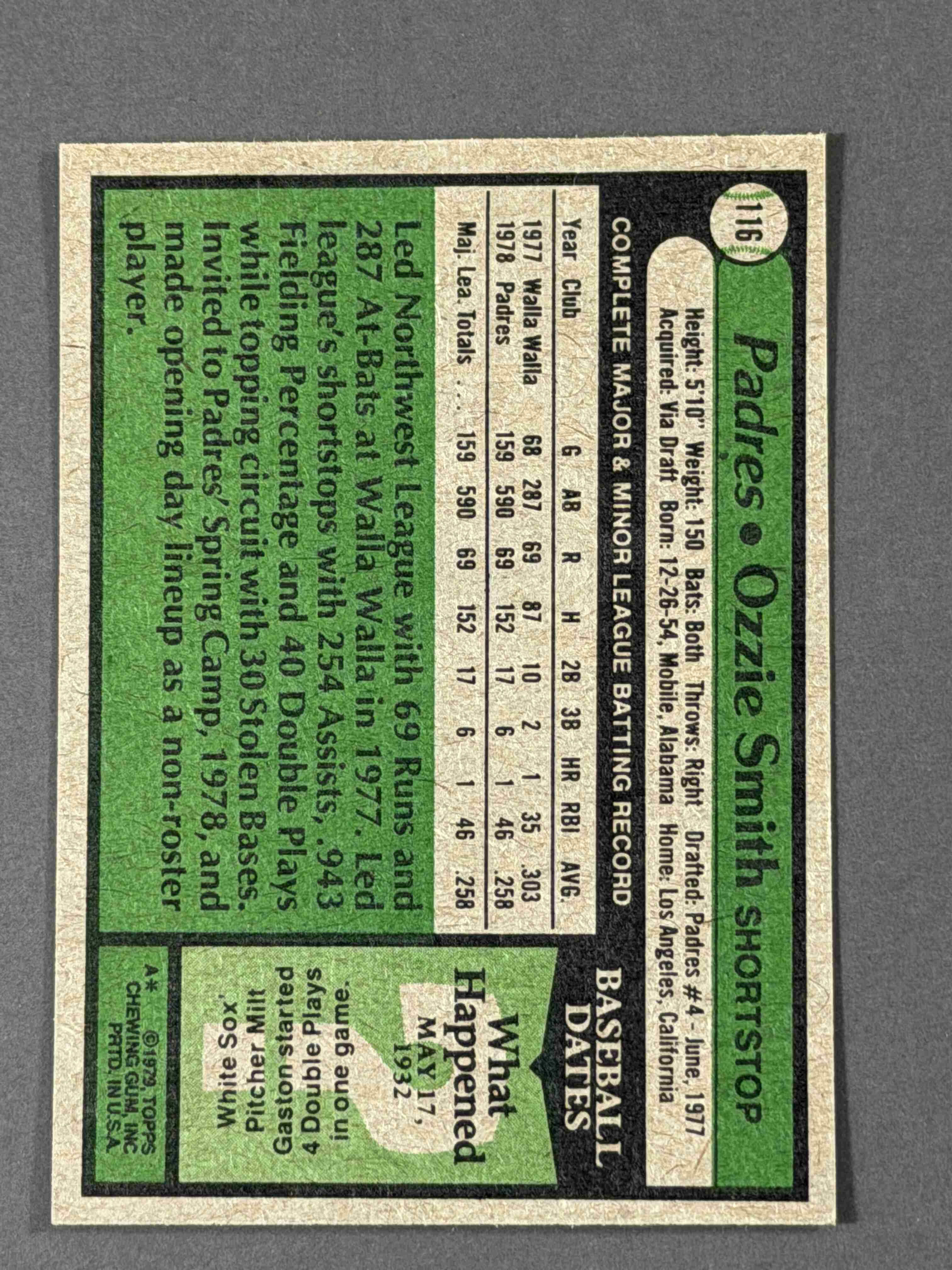 1979 Topps Ozzie Smith RC in EX-MT condition. Centering much better than ones you normally see. SKU:178402