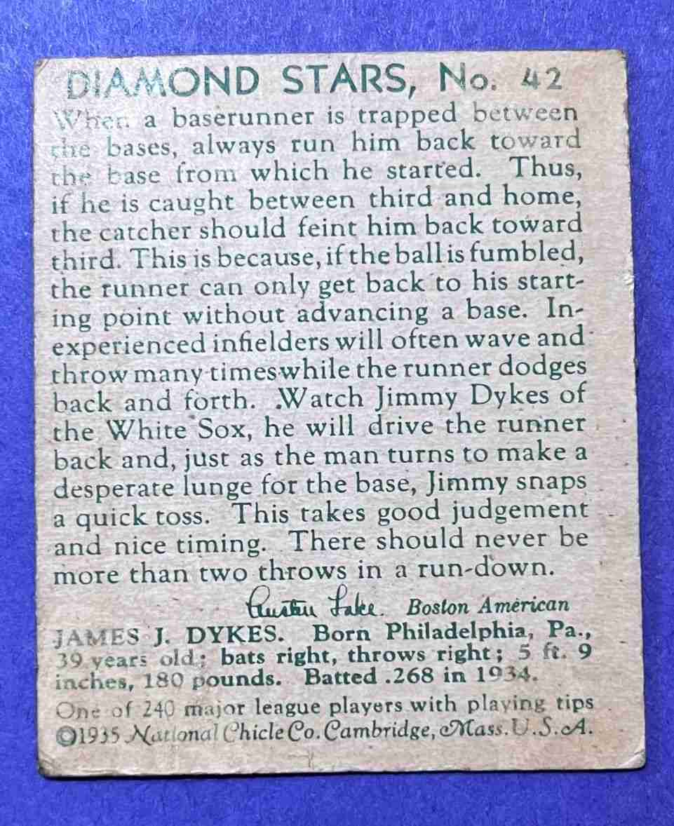 1934-36 DiamondStars JIMMY DYKES #42 +++
