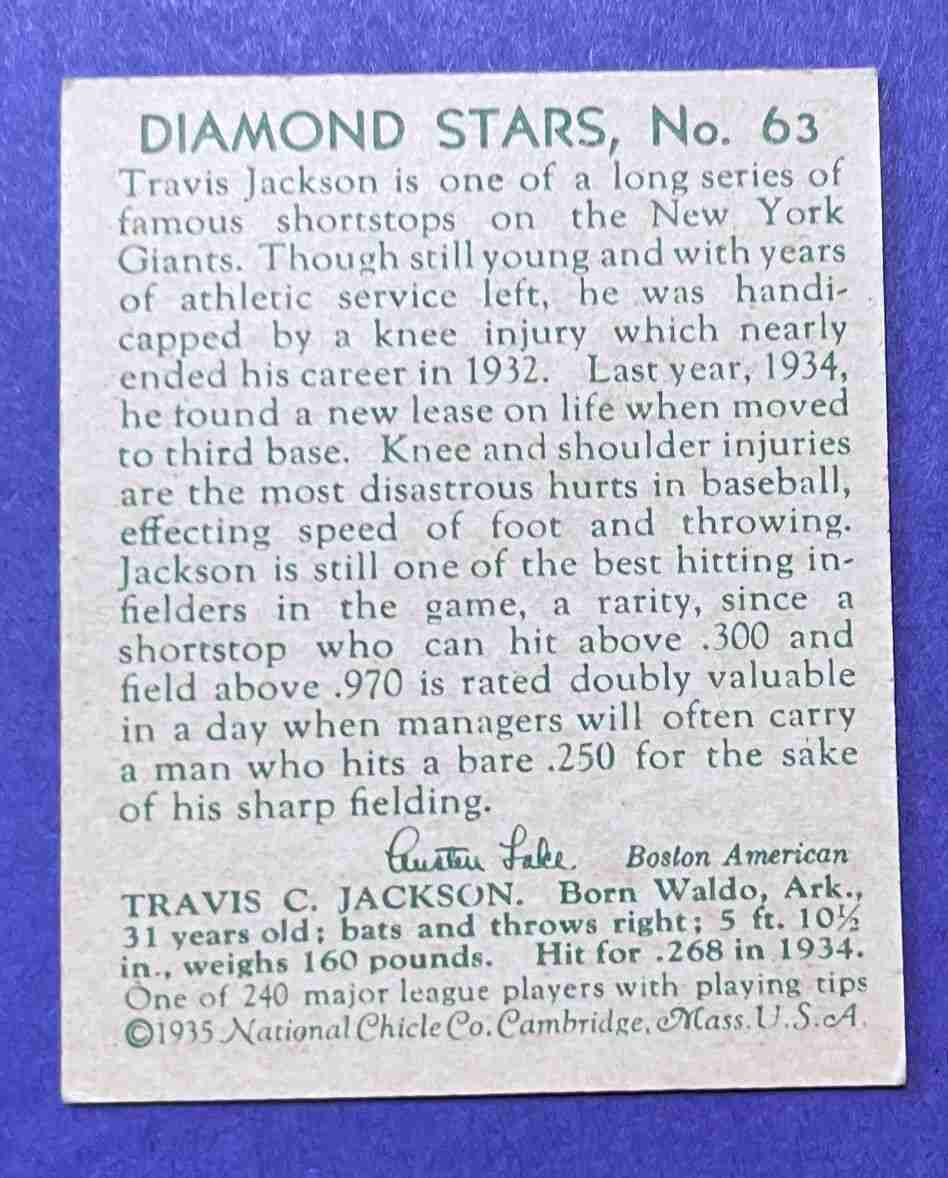 1934-36 DiamondStars STONEWALL JACKSON #63 HOF!