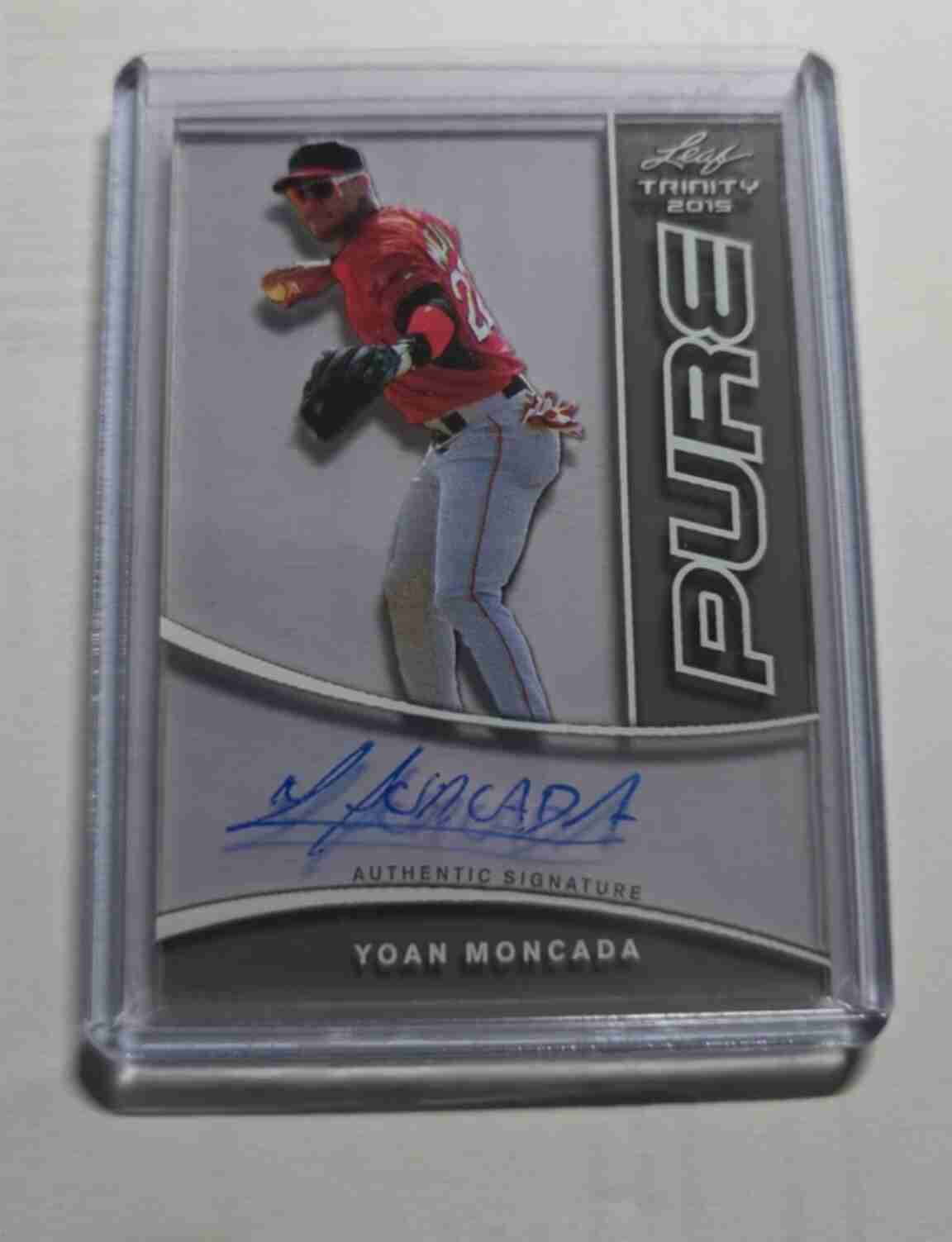 2015 LEAF TRINITY PURE GLASS YOAN MONCADA AUTO Charcoal RC #PA-YM1 ROOKIE. Card is in Nr-Mt condition.