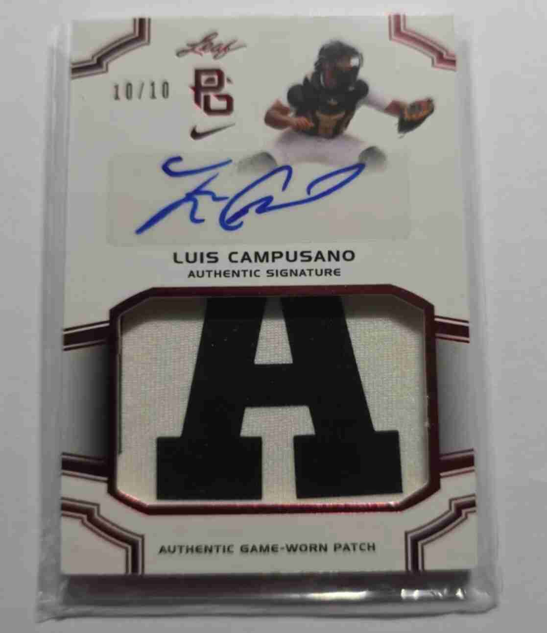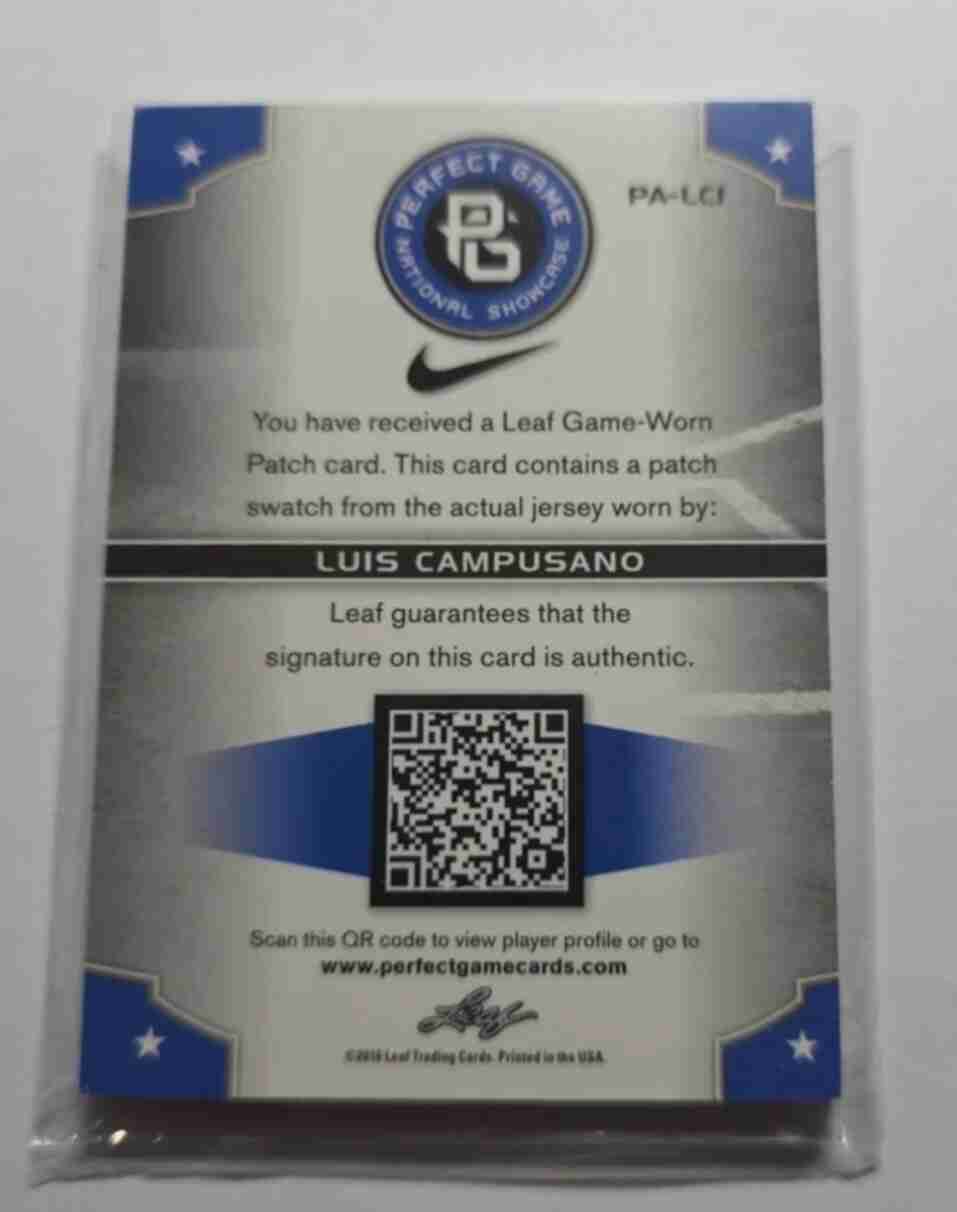 2016 Leaf Luis Campusano Perfect Game Patch AU Red #10/10 PALC1 San Diego Padres. Card is in Nr-Mt condition.