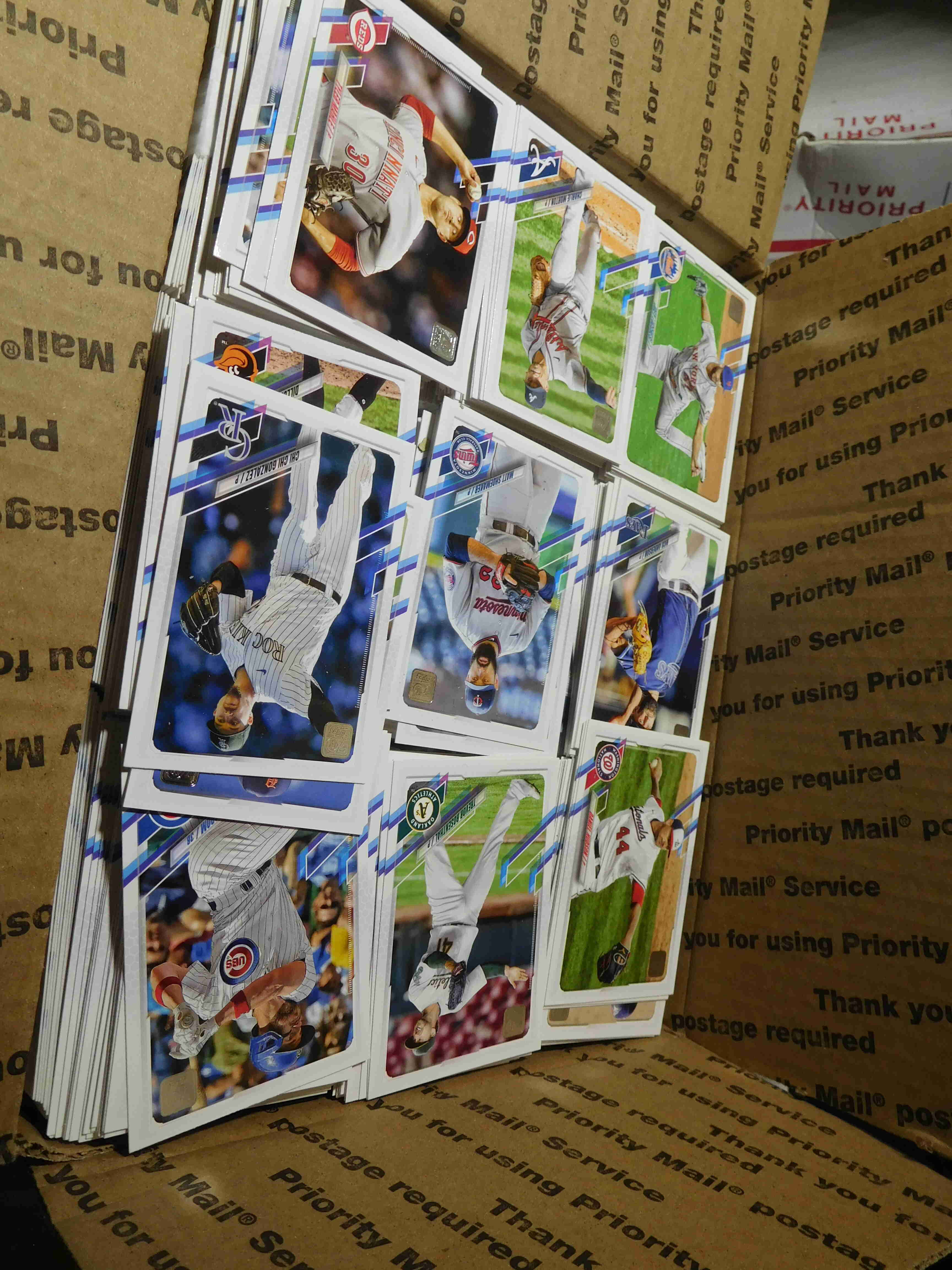 Nice Bulk Lot of 2021 Topps Update Baseball. These are customer store counter leftovers much of which was collated to make sets. Card count should be more than 2200 cards as the medium flat rate box is packed full. Thanks and good luck with your bidding.