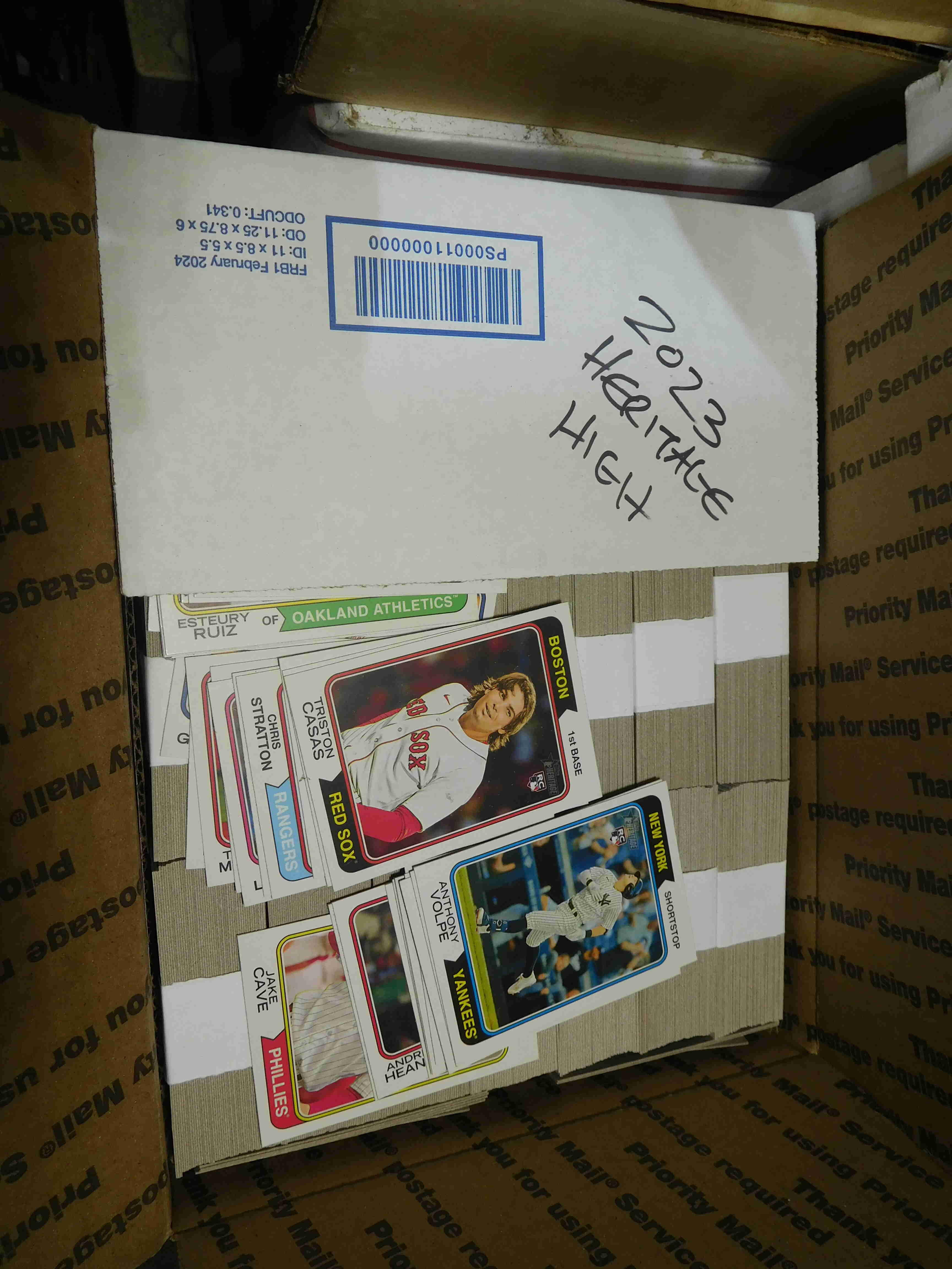 Nice Bulk Lot of 2023 Topps Heritage high Number Baseball. These are customer store counter leftovers. We did not go through these at all. Card count should be more than 2000 cards as the medium flat rate box is packed fairly full. Thanks and good luck with your bidding.