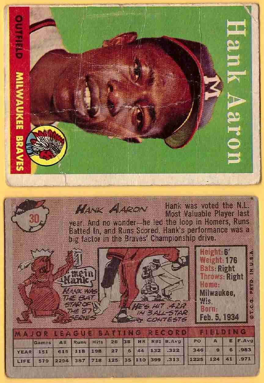 1958 Topps #30 Hank Aaron <=======================>[SL314] refer to pictures for condition/grade of card =================================================