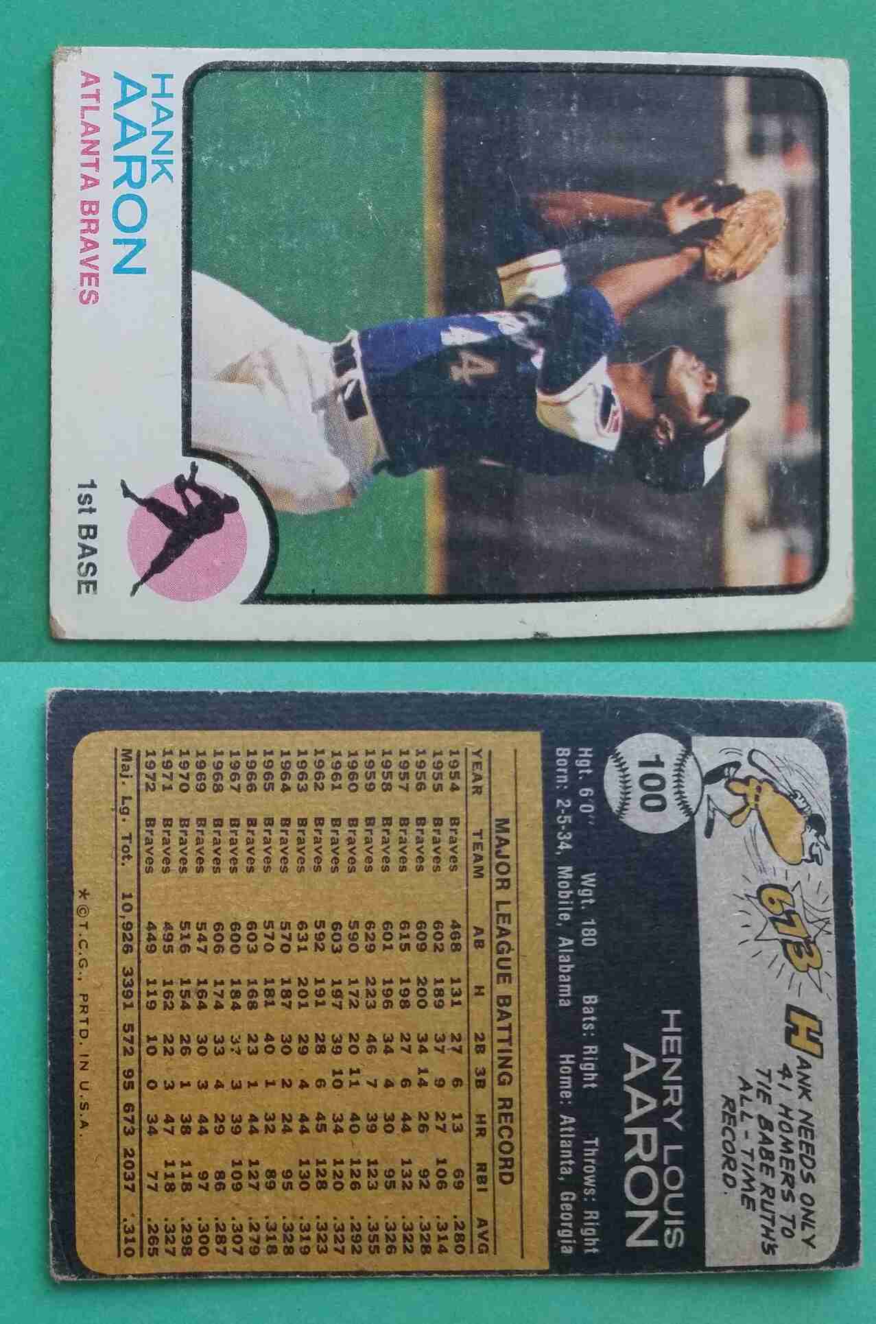 1973 Topps #100 Hank Aaron <======================>[SL320] refer to pictures for condition/grade of card =================================================