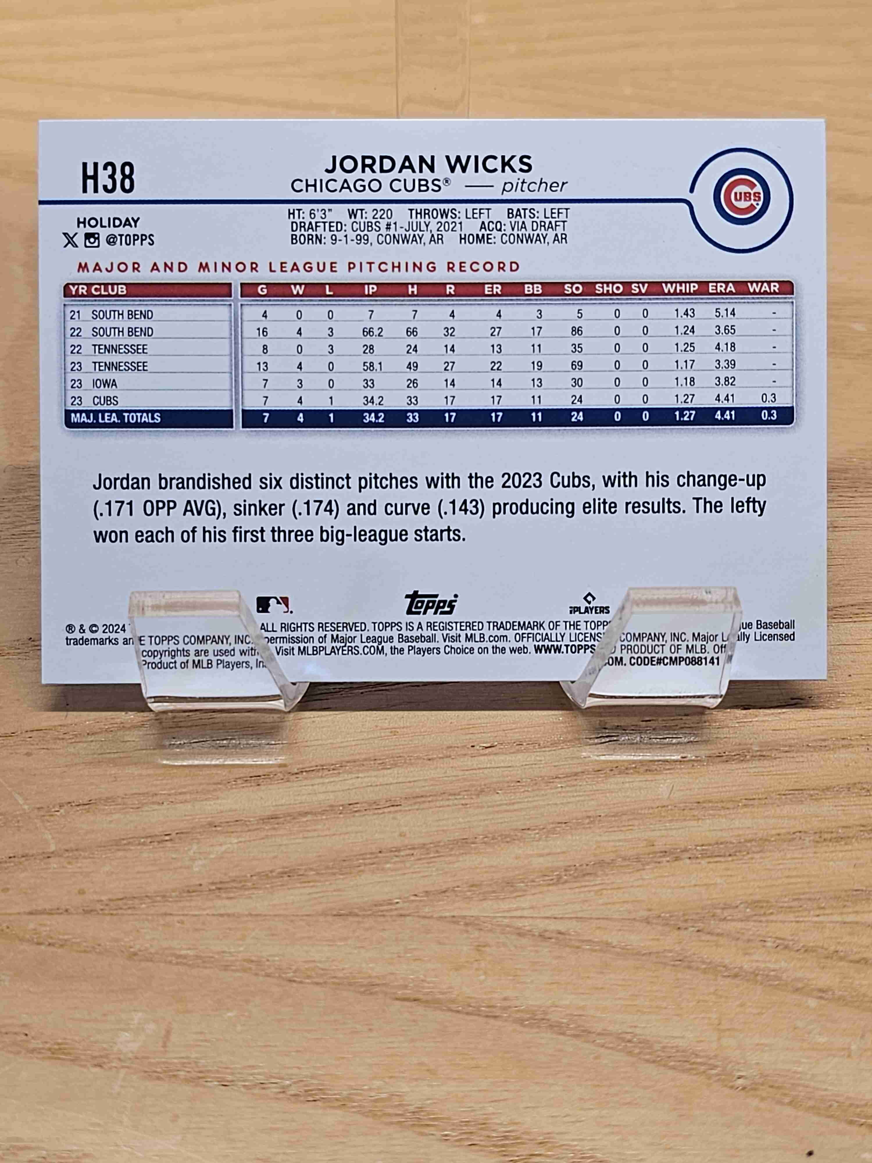 2024 Topps Holiday Baseball Rookie RC Jordan Wicks Chicago Cubs Card #H38