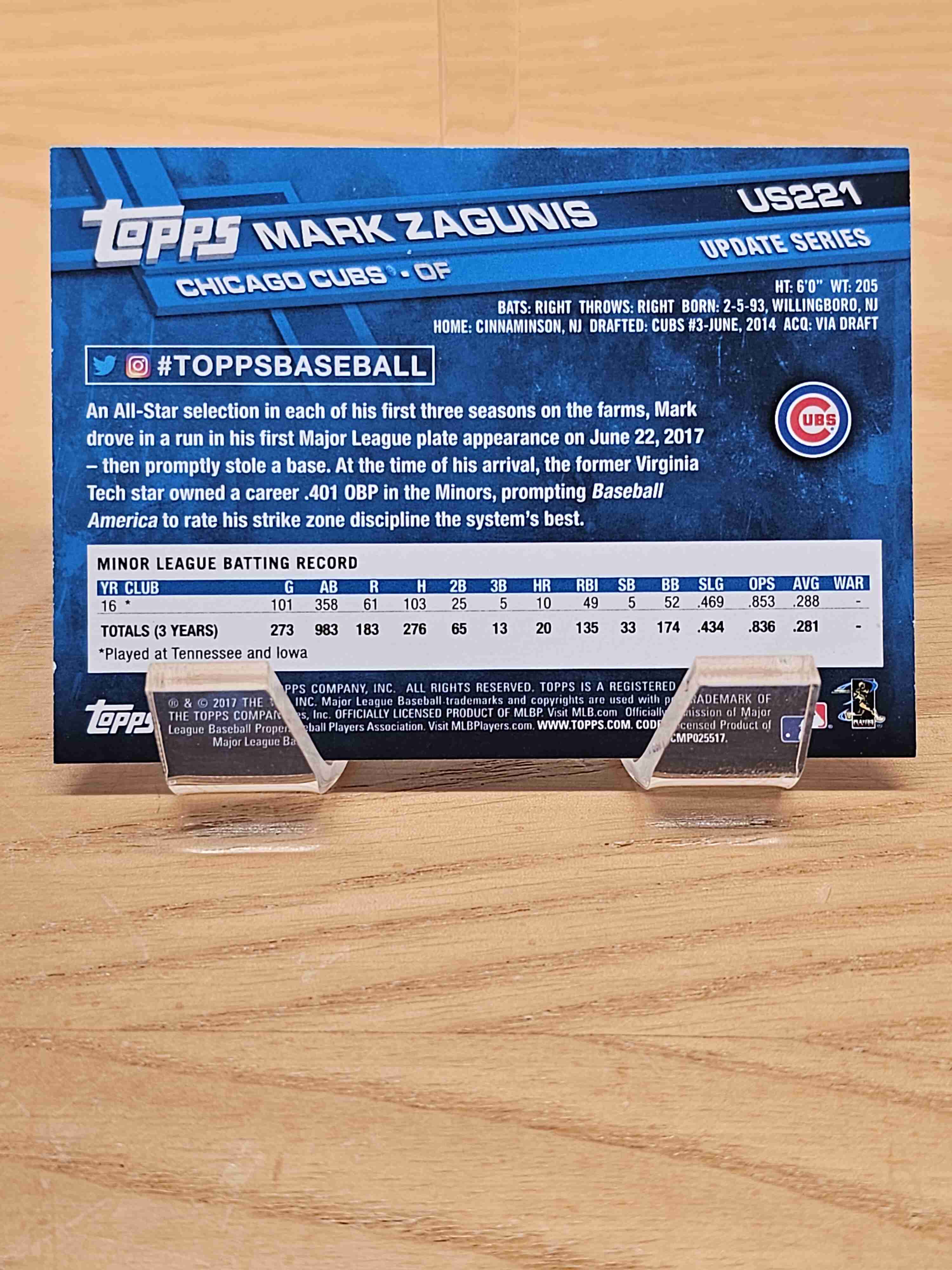 2017 Topps Update Series Baseball Rookie RC Mark Zagunis Chicago Cubs Card #US221