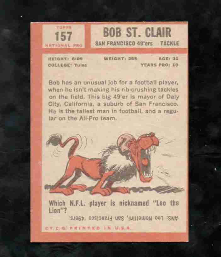 1962 Topps # 157 HOFer BOB ST. CLAIR 49er's