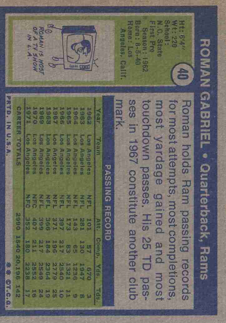 1972 Topps #40 Roman Gabriel Rams