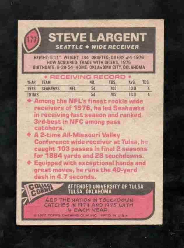 1977 Topps # 177 RC STEVE LARGENT Seahawks NM/M