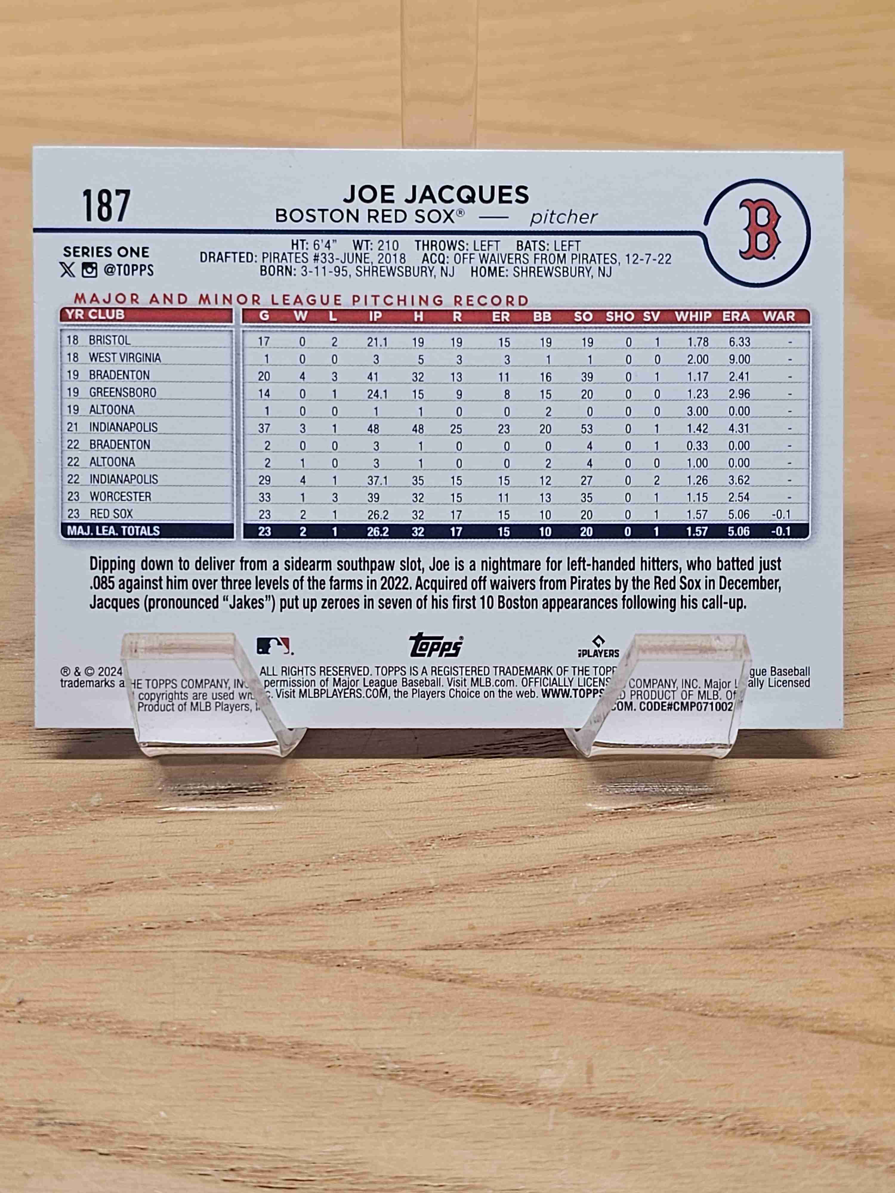 2024 Topps Series One Baseball Rookie RC Joe Jacques Boston Red Sox Card #187