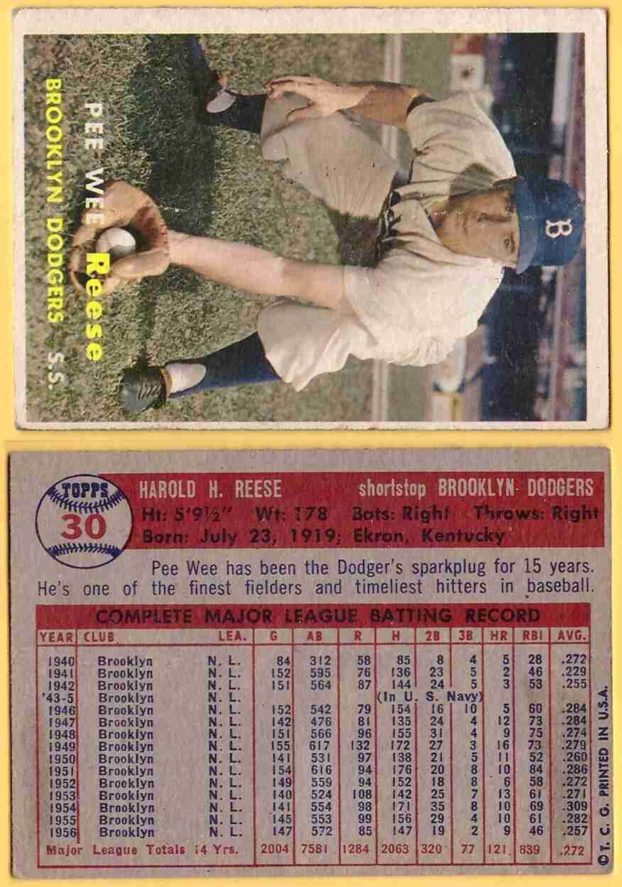 1957 Topps #30 PeeWee Reese <=====================>[SL349] refer to pictures for condition/grade of card =================================================