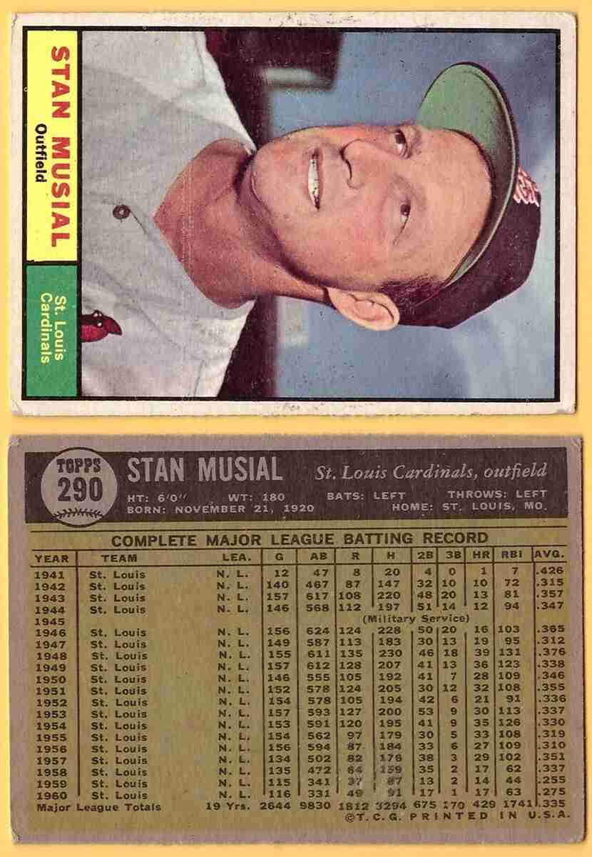 1961 Topps #290 Stan Musial <=====================>[SL354] refer to pictures for condition/grade of card =================================================