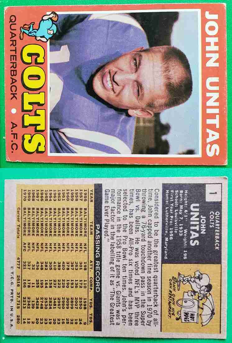 1971 Topps #1 Johnny Unitas <=====================>[SL358] refer to pictures for condition/grade of card =================================================