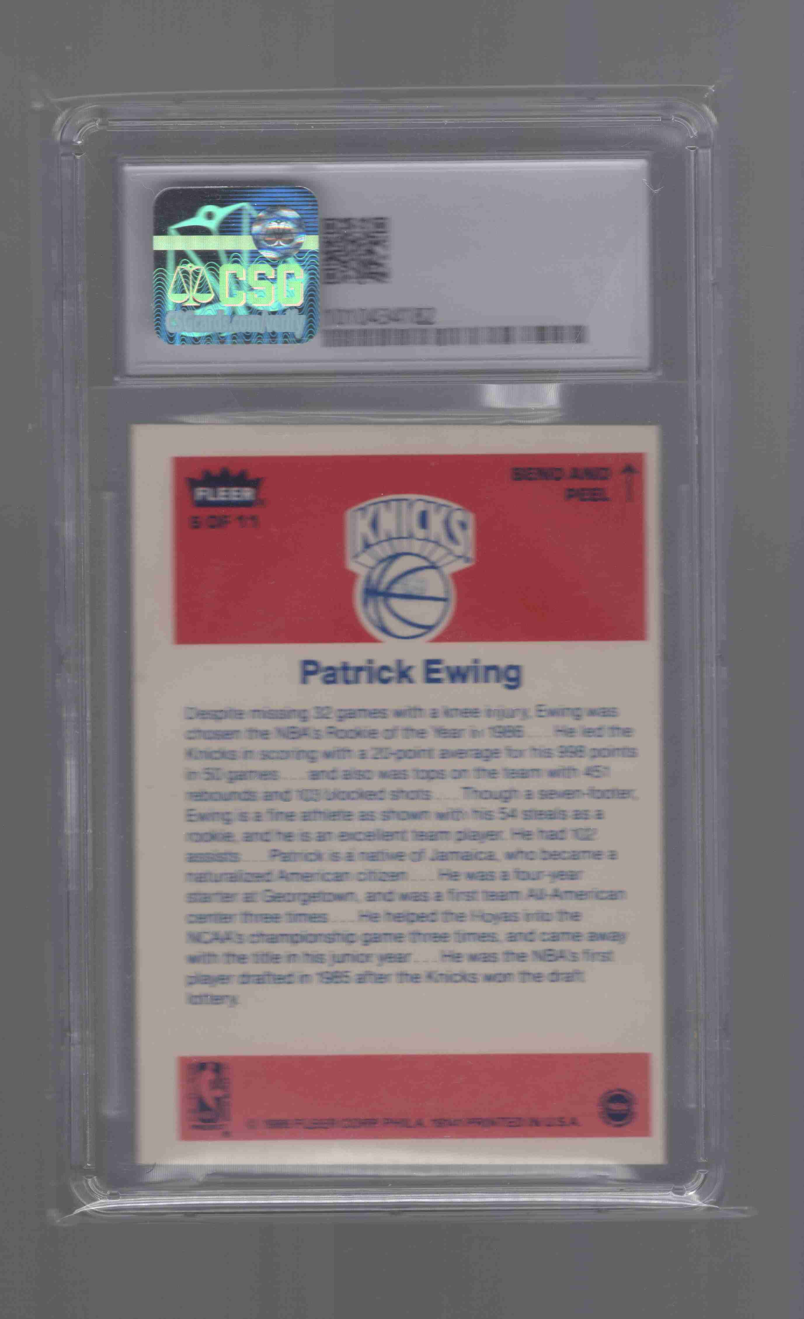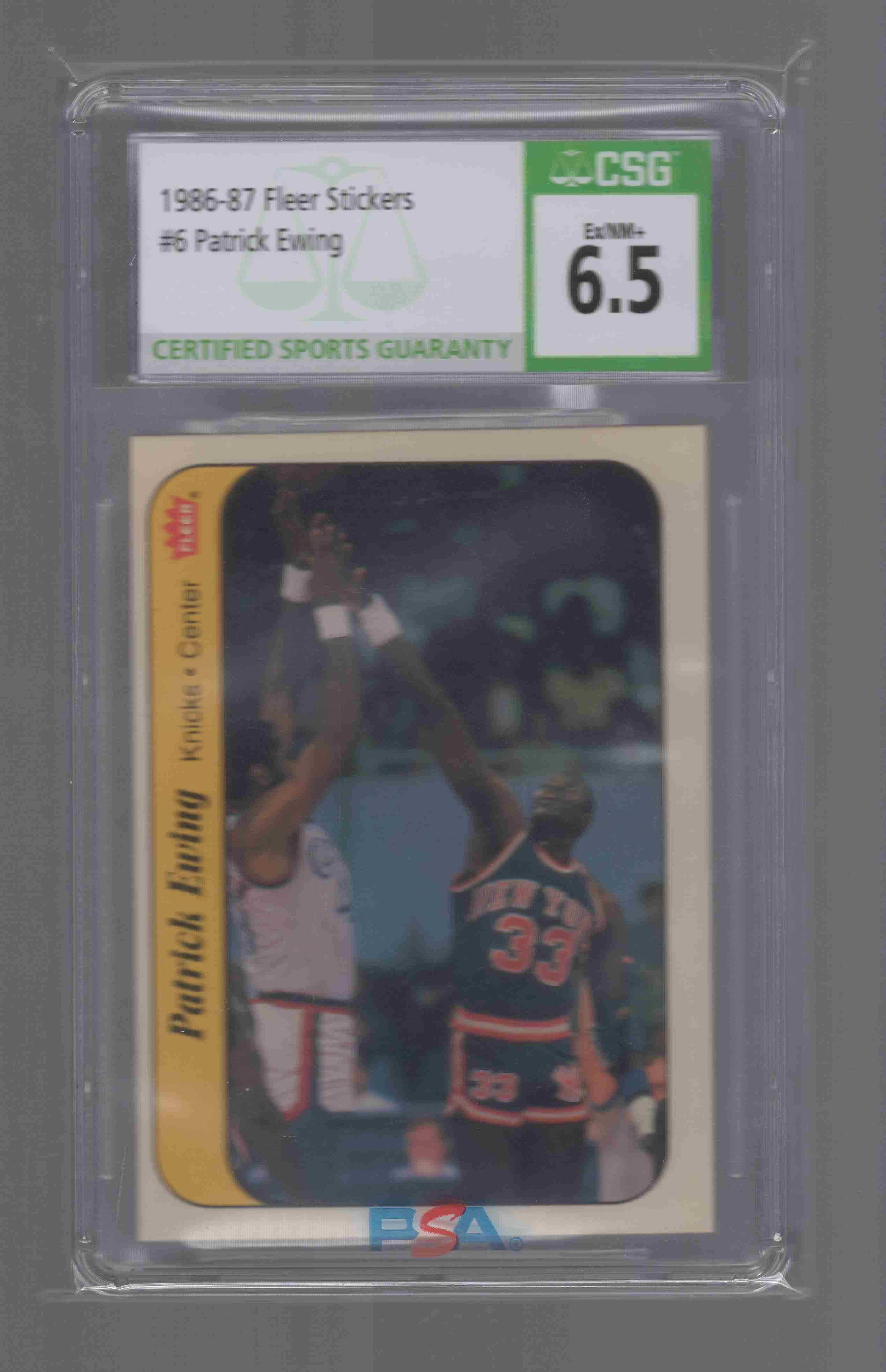 Patrick Ewing 1986 Fleer Sticker rookie. Graded 6.5 EX/NM+ by CSG which is now CGC. Shipped with tracking see other items to combine shipping.
