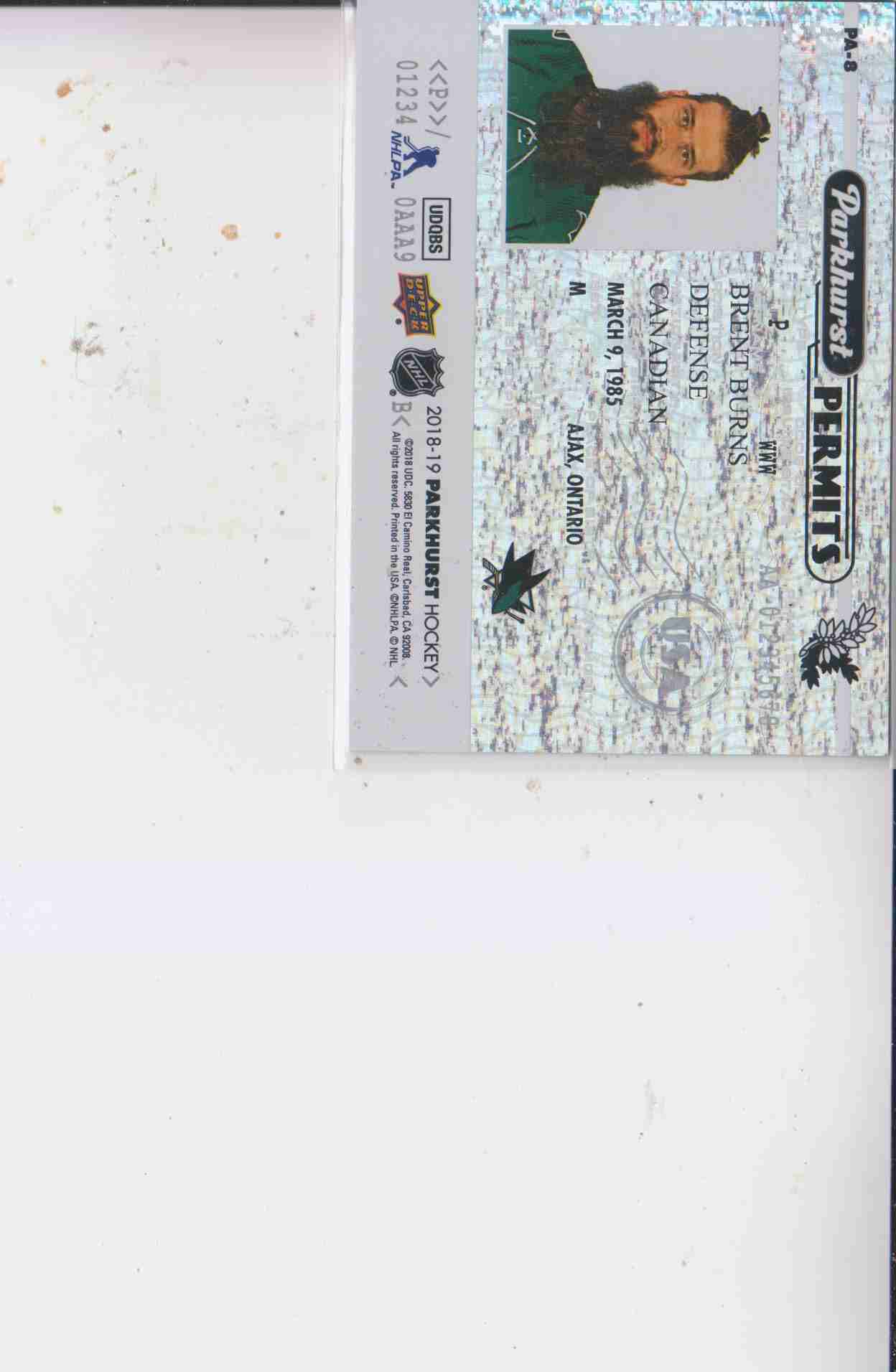 2018-19 #PA-8 BRENT BURNS parkhurst NR-MT