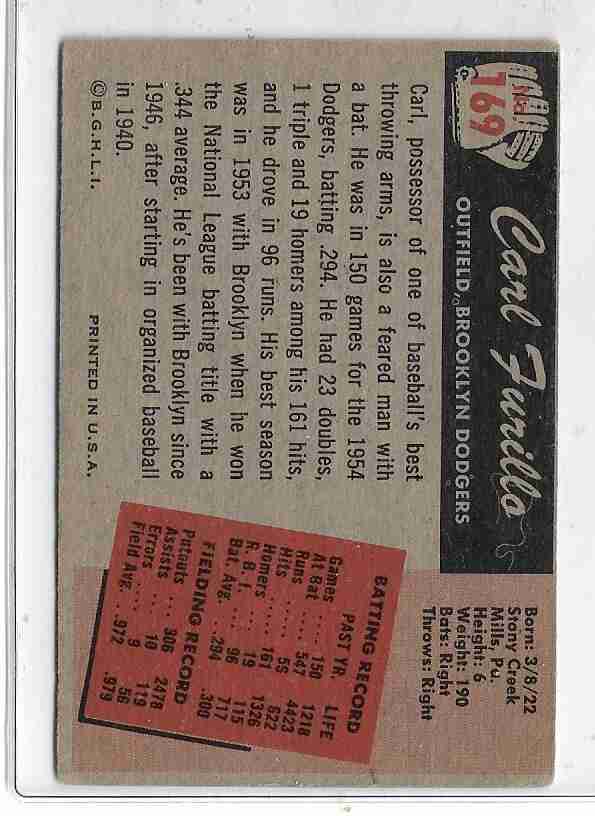 1955 Bowman #169 ~ Carl Furillo Brooklyn Dodgers