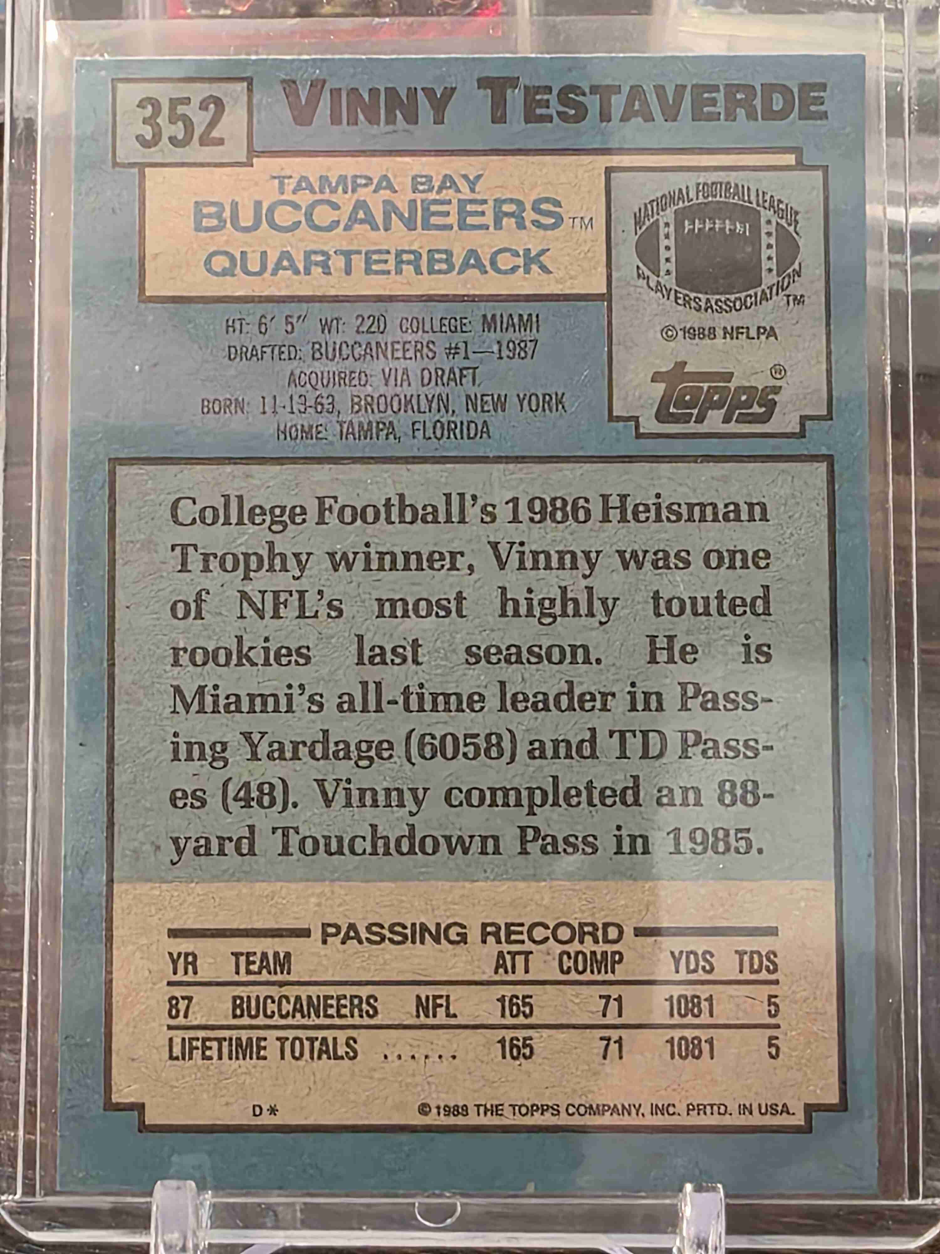 1988 Topps #352 Vinnie Testaverde