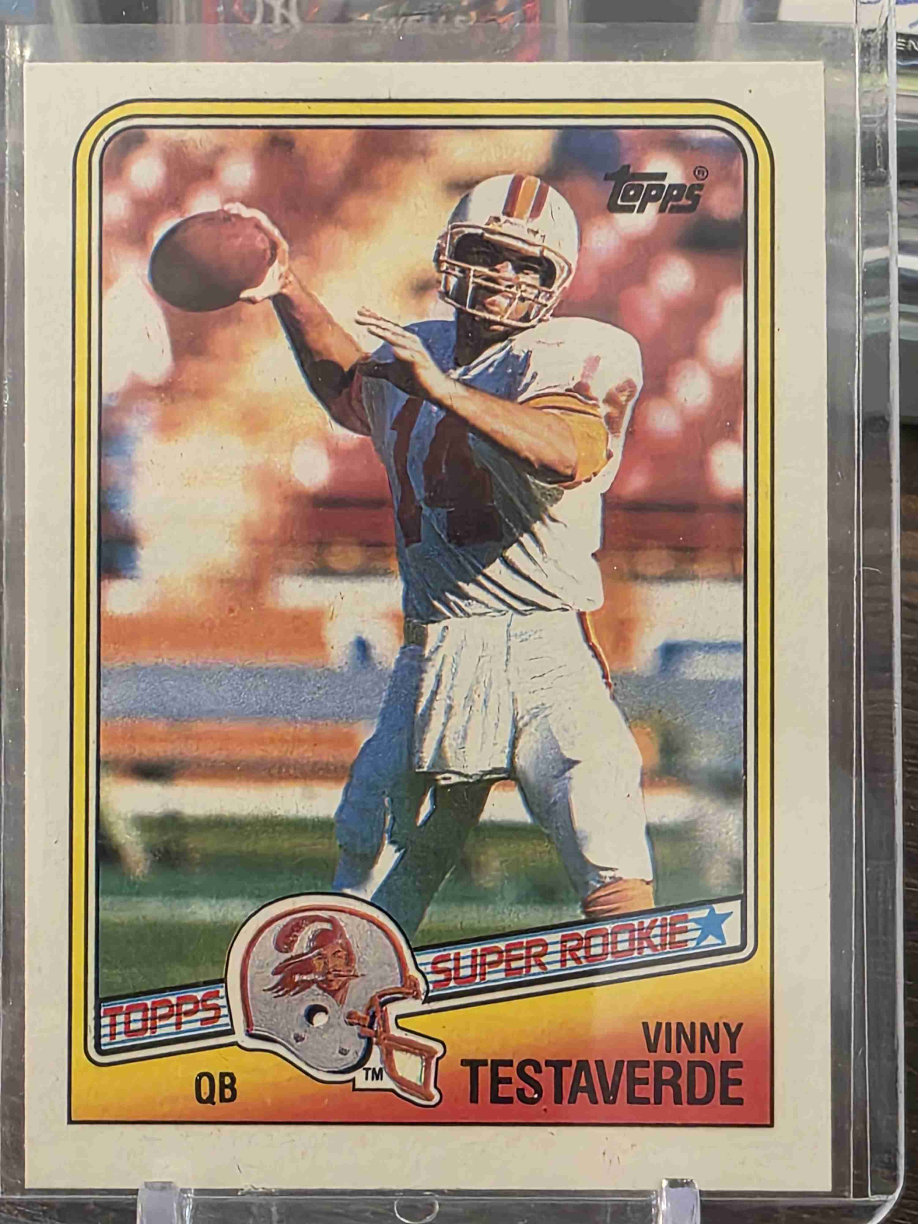 Up for sale is a **Vinny Testaverde Super Rookie** card from the 1988 Topps Football set (#352). This card features the iconic **Super Rookie** designation from Topps, highlighting one of the most anticipated quarterback prospects of the late 1980s with clean photography and classic card design. **Vinny Testaverde**, the #1 overall pick in the 1987 NFL Draft and Heisman Trophy winner from the University of Miami, began his professional career with the Tampa Bay Buccaneers. Known for his powerful arm and durability, Testaverde went on to have one of the longest careers in NFL history, playing 21 seasons across multiple teams. This **rookie card** from the beloved 1988 Topps set remains a staple for vintage football collectors and fans of classic NFL memorabilia.