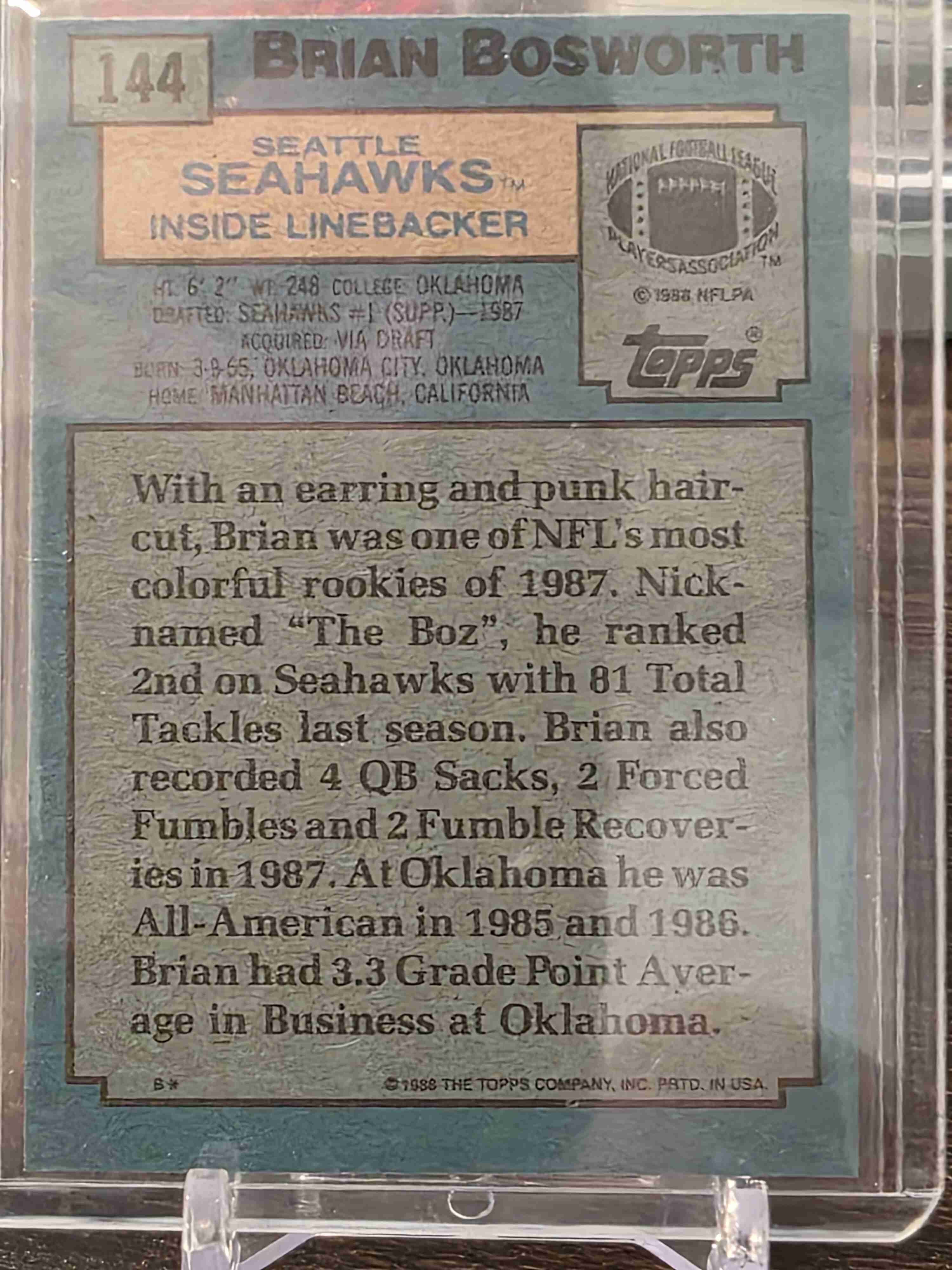 1988 Topps #144 Brian Bosworth