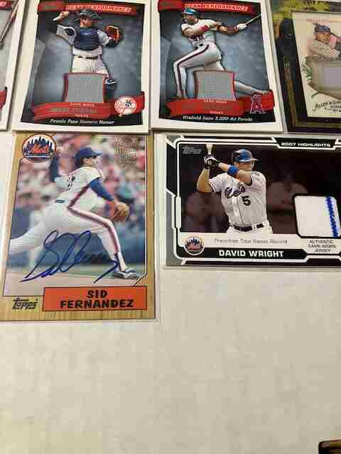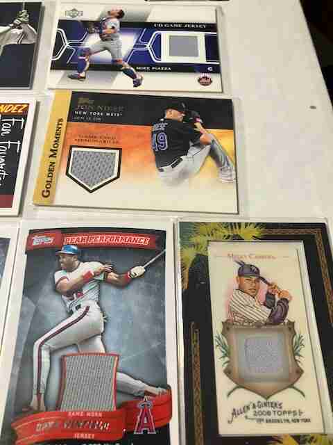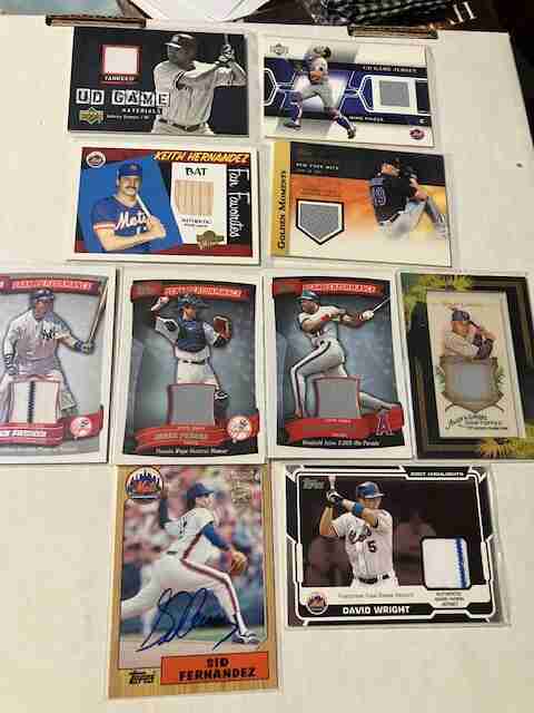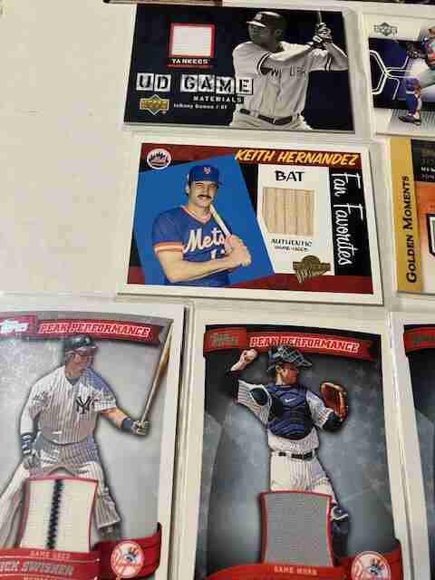 NICK SWISHER (NICE STRIPE - JERSEY) - JORGE POSADA (PANTS SWATCH) - DAVE WINFIELD (AS MRNTIONED JERSEY SWATCH)) - MELKY CABRERA (PANTS SWATCH) - KEITH HERNANDEZ (BAT #193/200)- JON NIESE (GAME WORN) - JOHNNY DAMON (GAME WORN)- MIKE PIAZZA (JERSEY SWATCH) - DAVID WRIGHT (NICE STRIPE - JERSEY SWATCH) & SID FERNANDEZ AUTO CARD.